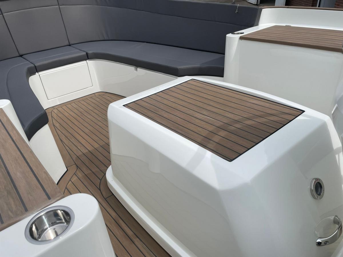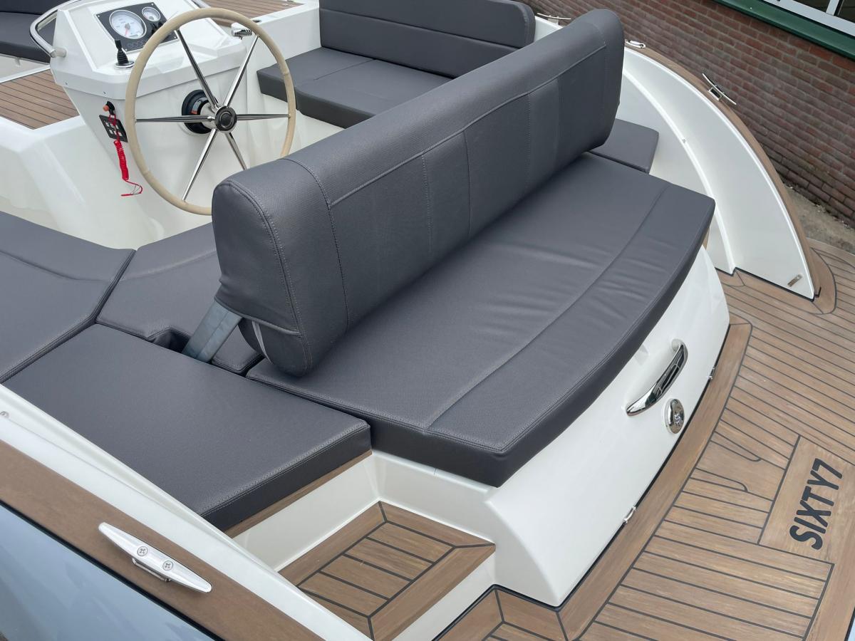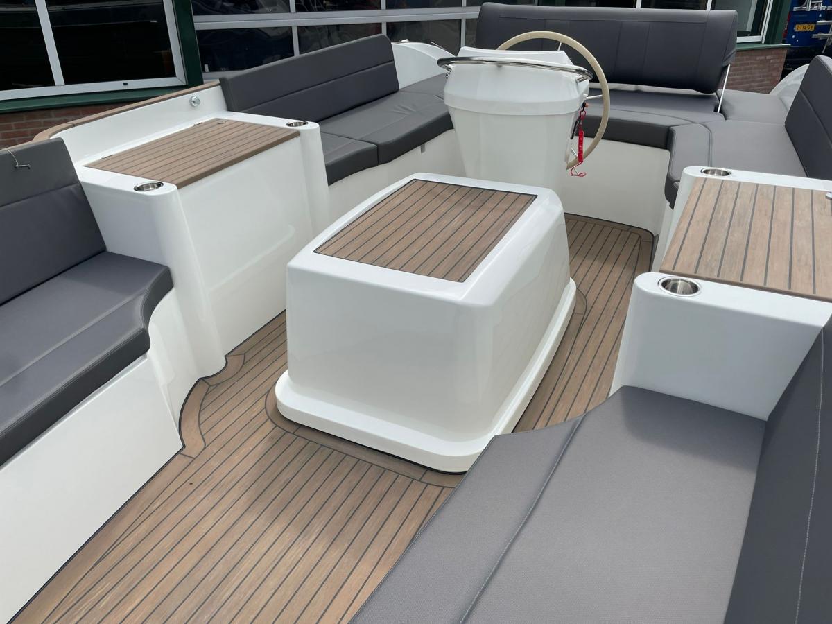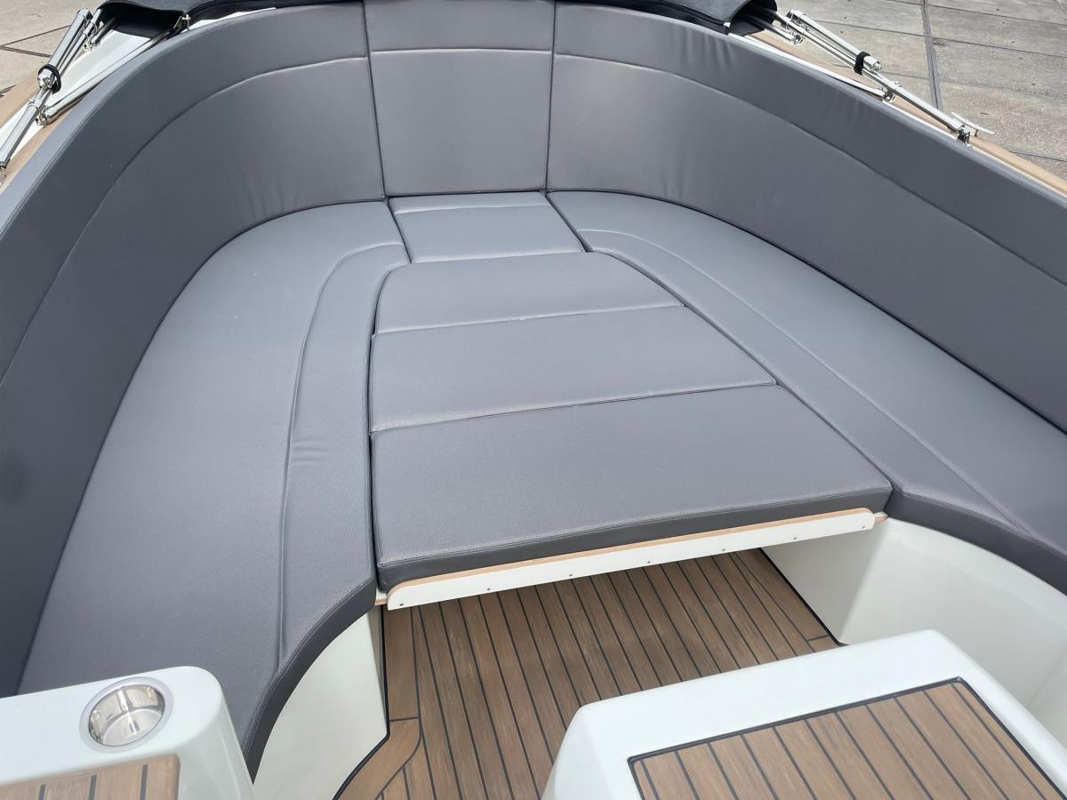 De rondzit aan de achterkant is volledig aan te passen naar uw voorkeuren. Met het praktische systeem kunt u de rondzit eenvoudig omtoveren tot een comfortabel ligbed. Dankzij de vernieuwde open spiegel met geïntegreerd zwemplateau kunt u gemakkelijk aan boord komen.