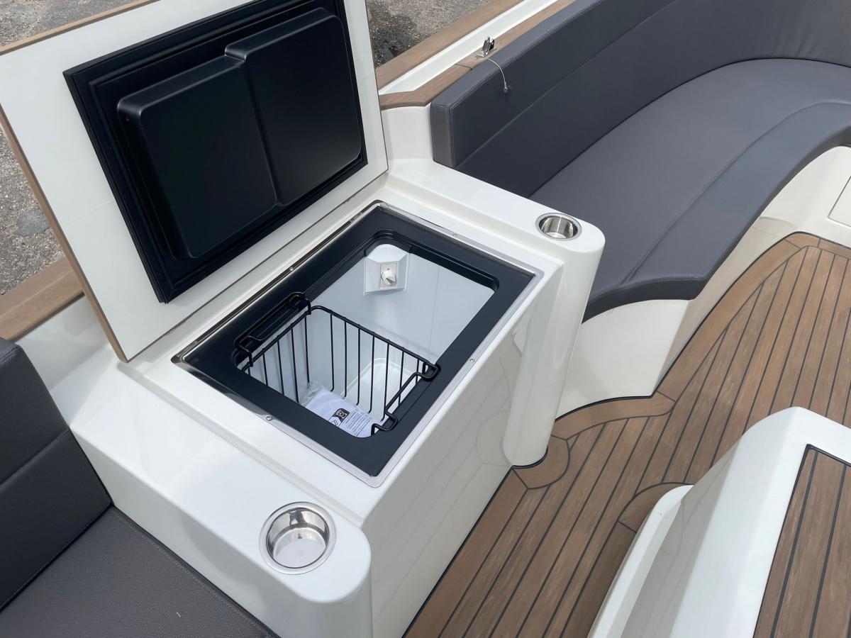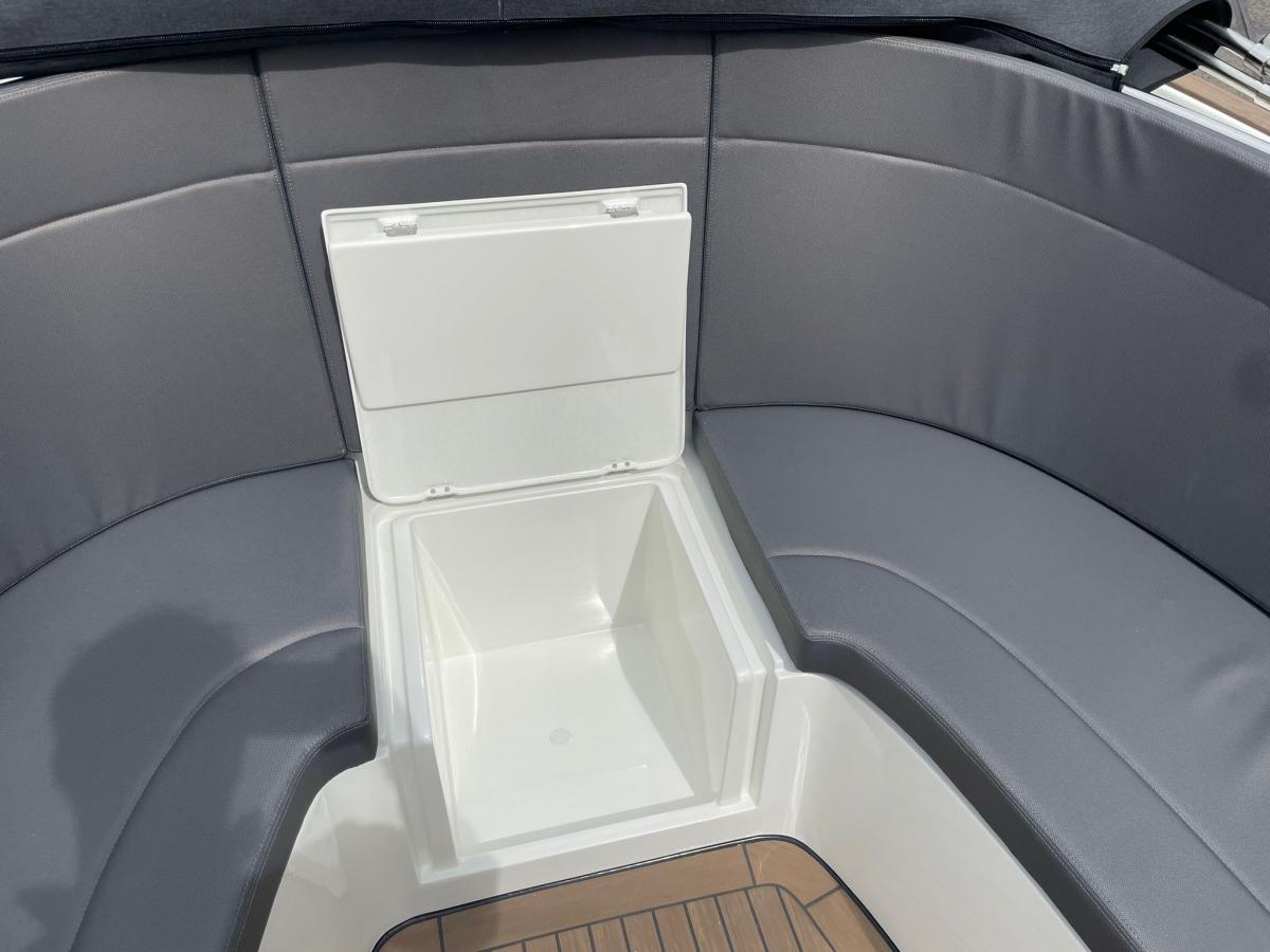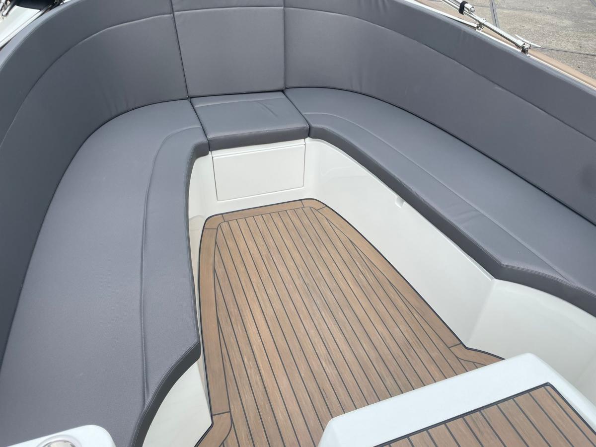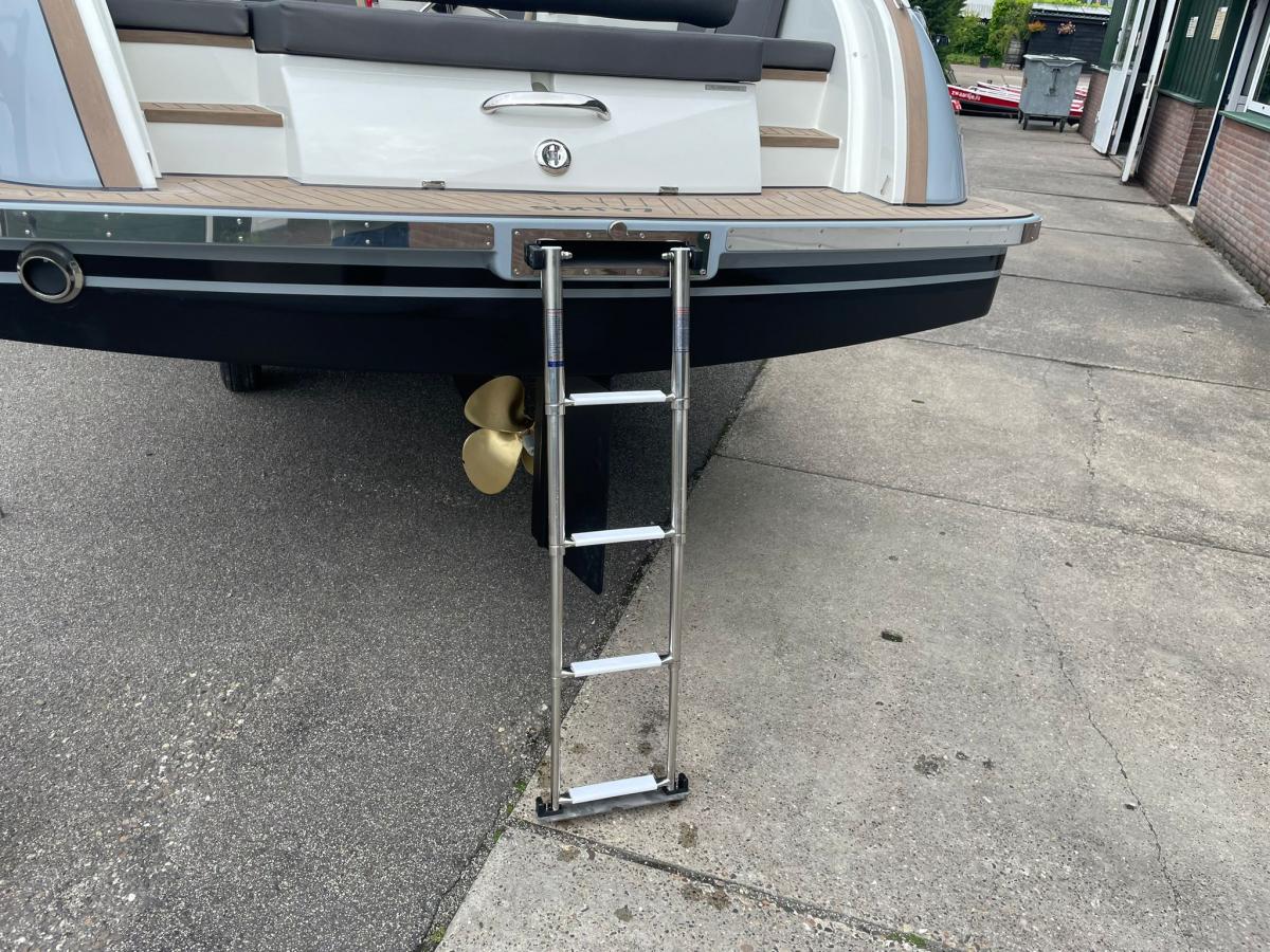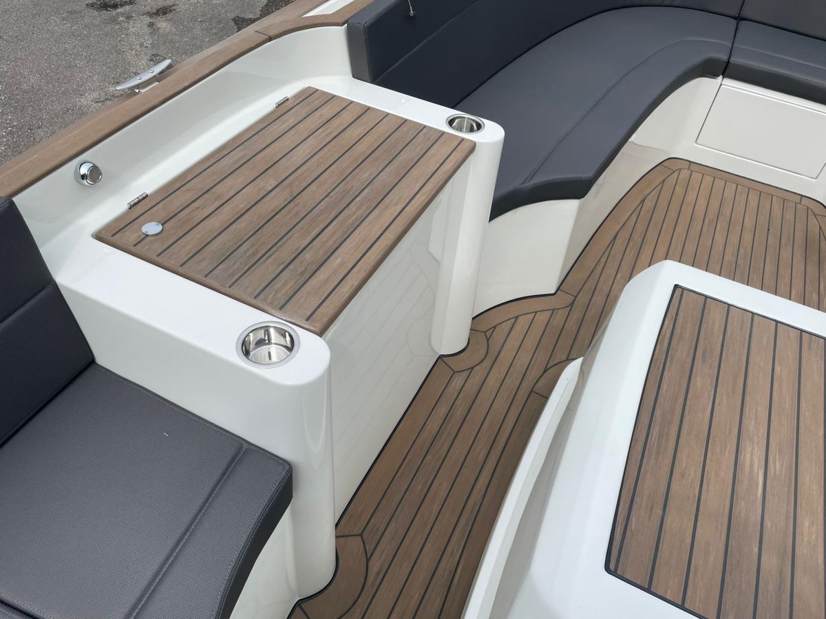 De rondzit aan de achterkant is volledig aan te passen naar uw voorkeuren. Met het praktische systeem kunt u de rondzit eenvoudig omtoveren tot een comfortabel ligbed. Dankzij de vernieuwde open spiegel met geïntegreerd zwemplateau kunt u gemakkelijk aan boord komen.