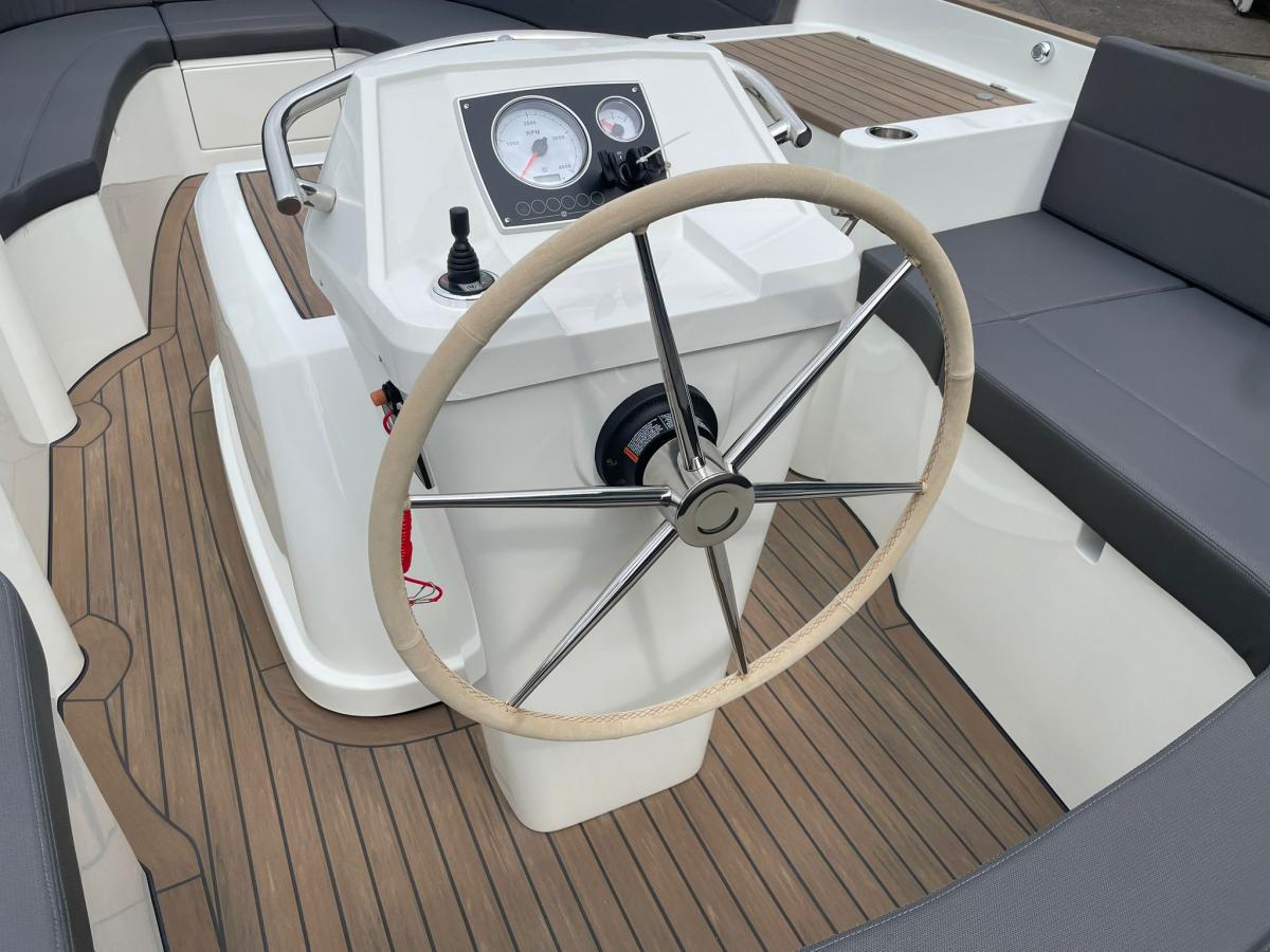- Stuurconsole met luxe stuurwiel (55 cm ø) met rvs spaken