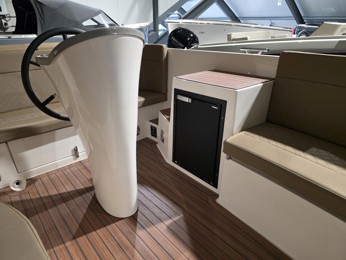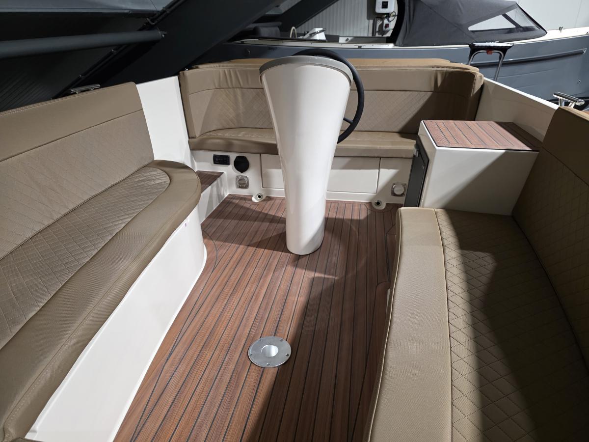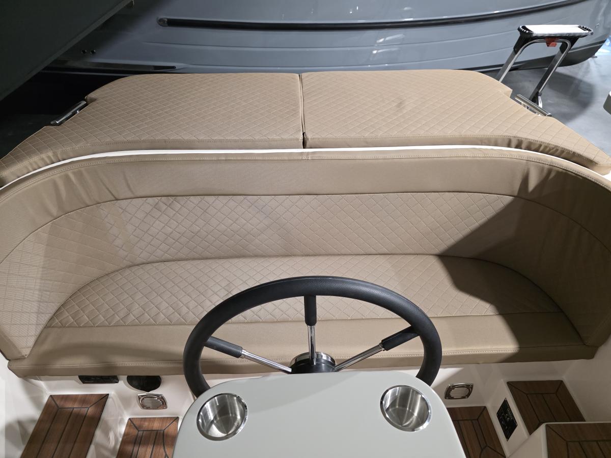De strakke belijning en het unieke onderwaterschip zorgen ervoor dat deze tender niet alleen een lust voor het oog is, maar ook een waar genot om mee te varen. Je kunt rekenen op koersvaste, en optioneel ook snelvarende, vaareigenschappen. Het ontwerp is volledig doordacht om optimaal comfort te bieden. De uitzonderlijk hoge rugleuningen zorgen voor ergonomisch zitplezier, terwijl de ruime rondzit en diepe opbergvakken de boot praktisch en gebruiksvriendelijk maken. Achter op de boot bevindt zich een zonnedek waar je heerlijk kunt zitten of liggen terwijl de schipper aan het varen is. Dit unieke design zorgt ervoor dat je dicht bij elkaar kunt blijven en samen kunt genieten van de omgeving, zelfs tijdens het varen. Het is bovendien ideaal voor je trouwe viervoeter, die hier comfortabel kan ontspannen en mee kan genieten van de frisse lucht en het uitzicht. Het zonnedek maakt de ervaring op het water nog completer en gezelliger. Voor extra ontspanning kan het uitneembare zonnedek eenvoudig tussen de rondzit worden geplaatst.