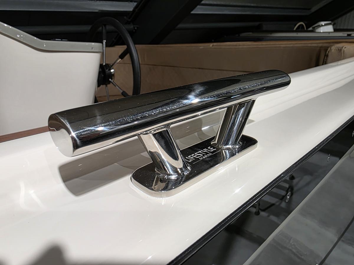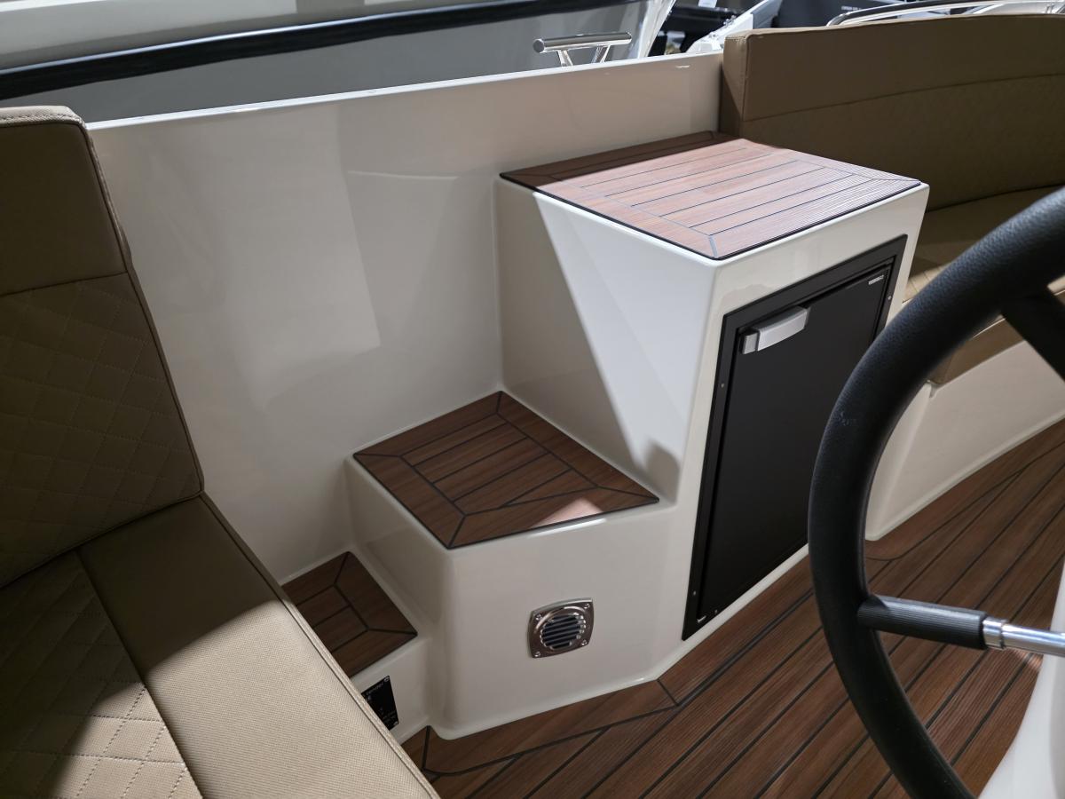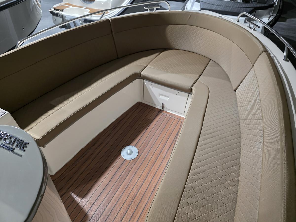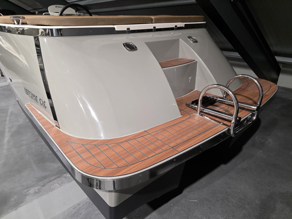 De strakke belijning en het unieke onderwaterschip zorgen ervoor dat deze tender niet alleen een lust voor het oog is, maar ook een waar genot om mee te varen. Je kunt rekenen op koersvaste, en optioneel ook snelvarende, vaareigenschappen. Het ontwerp is volledig doordacht om optimaal comfort te bieden. De uitzonderlijk hoge rugleuningen zorgen voor ergonomisch zitplezier, terwijl de ruime rondzit en diepe opbergvakken de boot praktisch en gebruiksvriendelijk maken. Achter op de boot bevindt zich een zonnedek waar je heerlijk kunt zitten of liggen terwijl de schipper aan het varen is. Dit unieke design zorgt ervoor dat je dicht bij elkaar kunt blijven en samen kunt genieten van de omgeving, zelfs tijdens het varen. Het is bovendien ideaal voor je trouwe viervoeter, die hier comfortabel kan ontspannen en mee kan genieten van de frisse lucht en het uitzicht. Het zonnedek maakt de ervaring op het water nog completer en gezelliger. Voor extra ontspanning kan het uitneembare zonnedek eenvoudig tussen de rondzit worden geplaatst.
