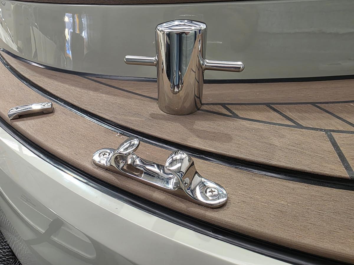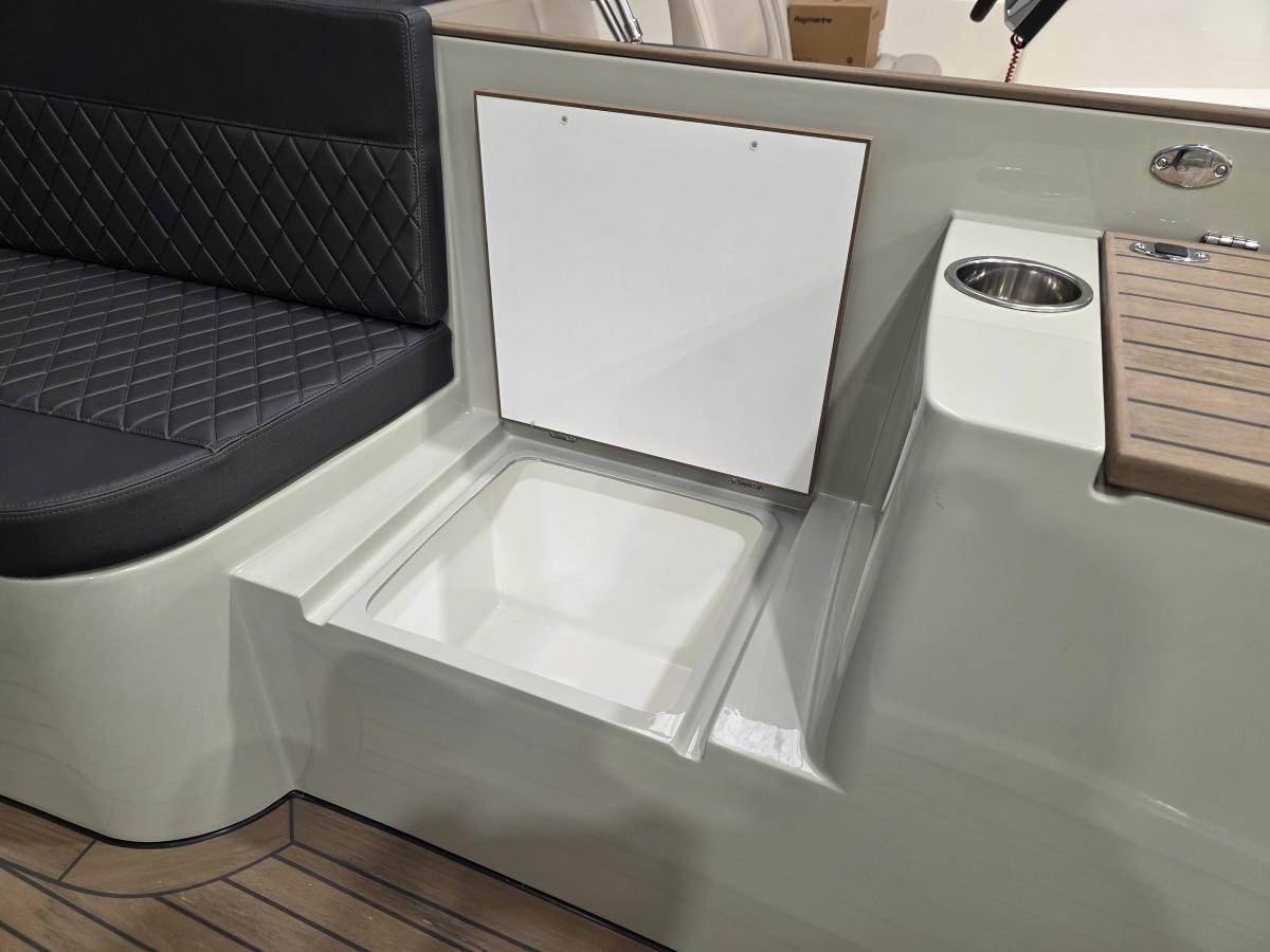 Kunst teak instaptreden met daaronder grote bergruimte voor landvasten en stootwillen