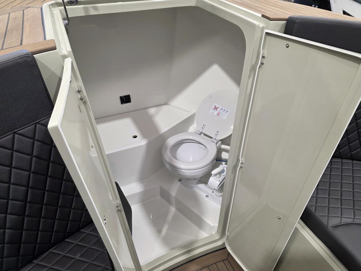 Voor in de sloep bevindt zich een afsluitbare toiletruimte voor extra privacy. Daarnaast is deze sloep uitgerust met een zonnebed en koelkist. Zo heeft u alle benodigdheden voor een aangename dag op het water.