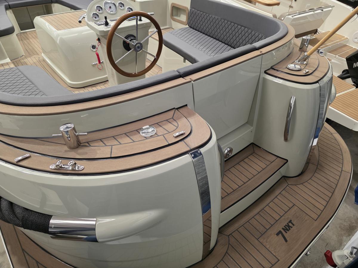 De bekende steile boeg met doorgestoken kabelaring van de Maril 6NXT komt ook in de Maril 7NXT terug en maakt de sloep een bijzondere verschijning op het water. Deze buitengewone stabiele en stijlvolle sloep is uitgerust met alle benodigdheden om optimaal te genieten op het water.