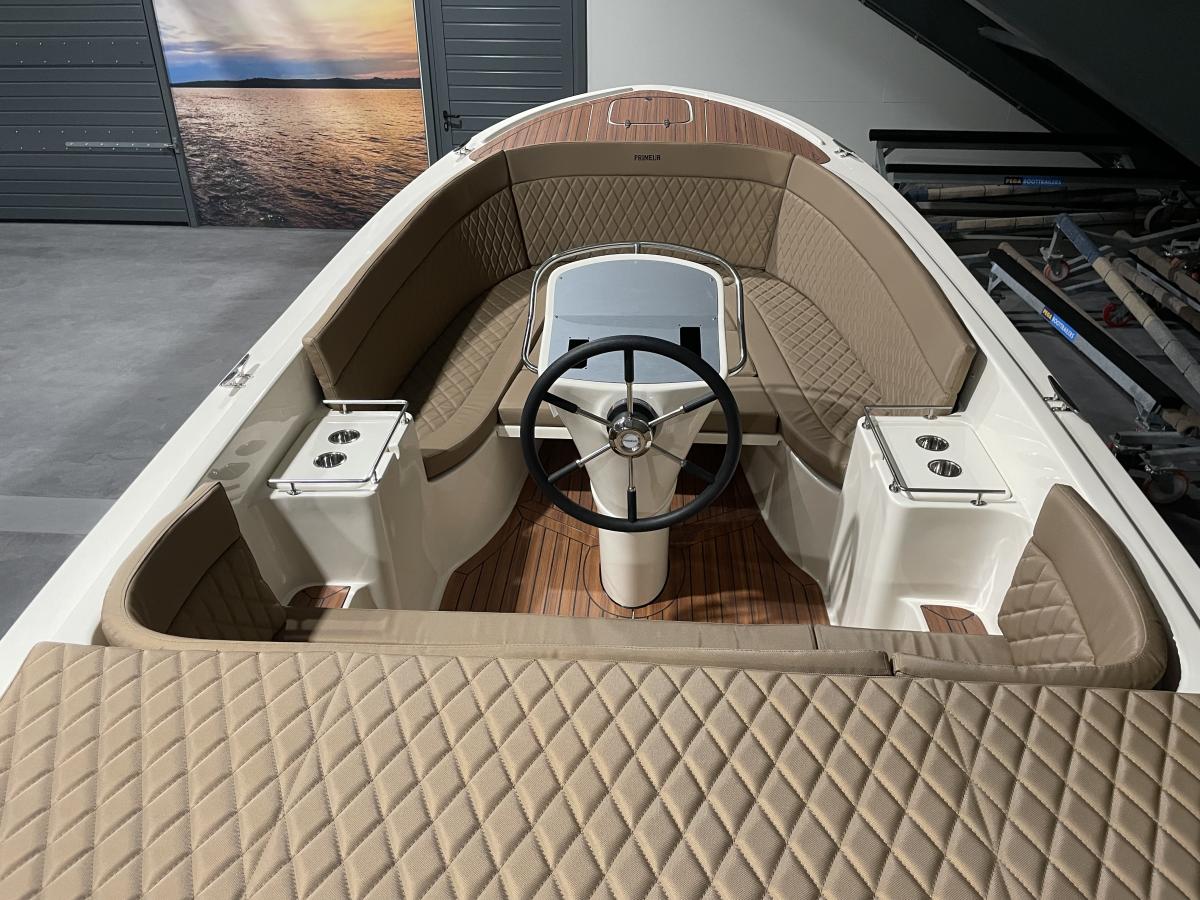 Deze prachtige Primeur wordt aangedreven door middel van een buitenboordmotor tot max 60 pk, welke geplaatst kan worden in een geluid isolerende bun.