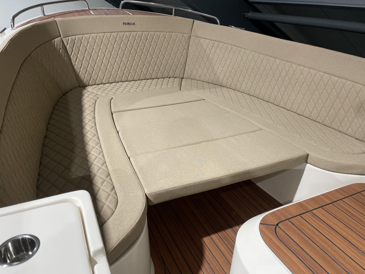 Met zijn hoogwaardige afwerking, slimme oplossingen en ruime indeling combineert de Primeur 700 Lounge comfort, flexibiliteit en luxe in één complete sloep.