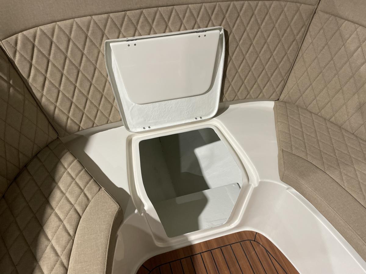 - Geïsoleerde koelbox aan stuur- en bakboord met 4 RVS bekerhouders