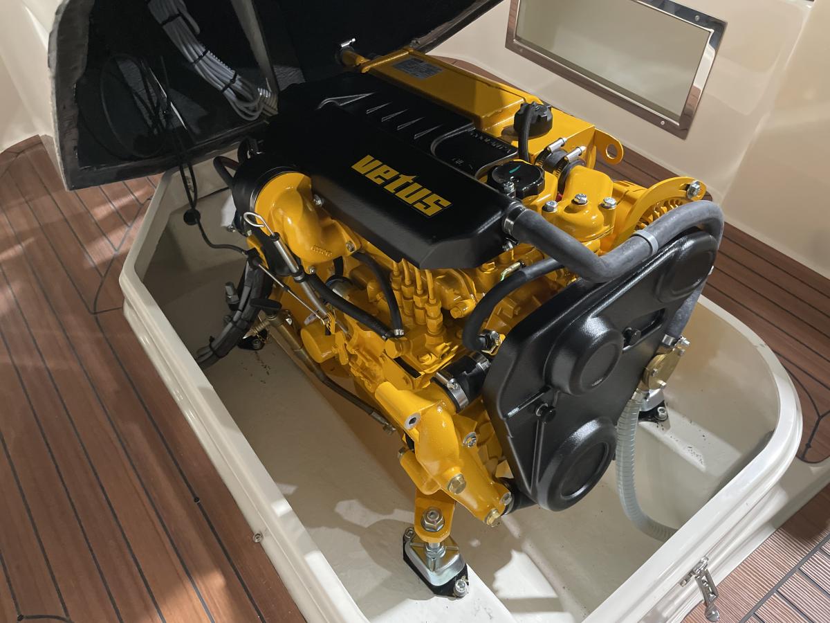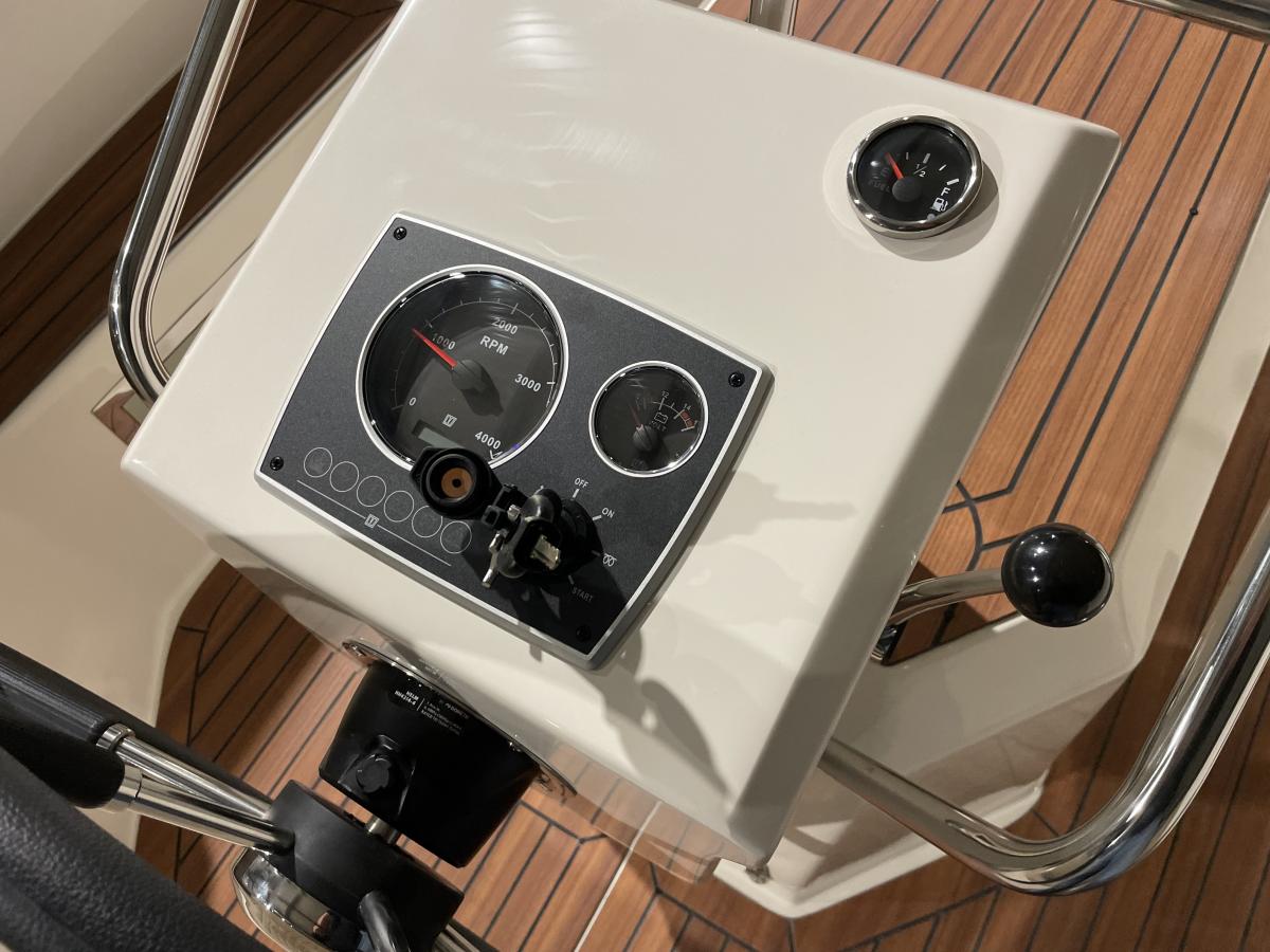 In het midden van de boot is plaats voor een handige tafel, ideaal voor gezellige momenten aan boord. Aan de voorzijde kan de zit worden omgebouwd tot een comfortabel zonnedek, perfect om te ontspannen in de zon. Daarnaast is er aan boord ruimte voor een chemisch toilet, wat extra comfort biedt tijdens langere vaartochten.