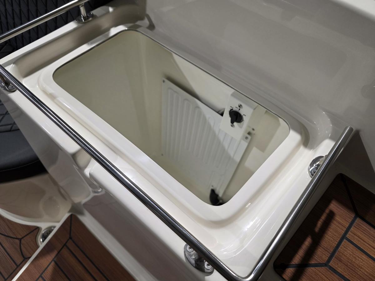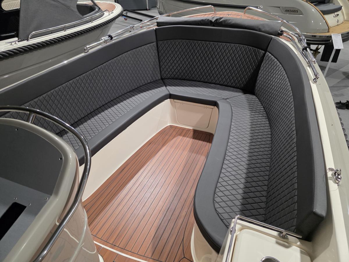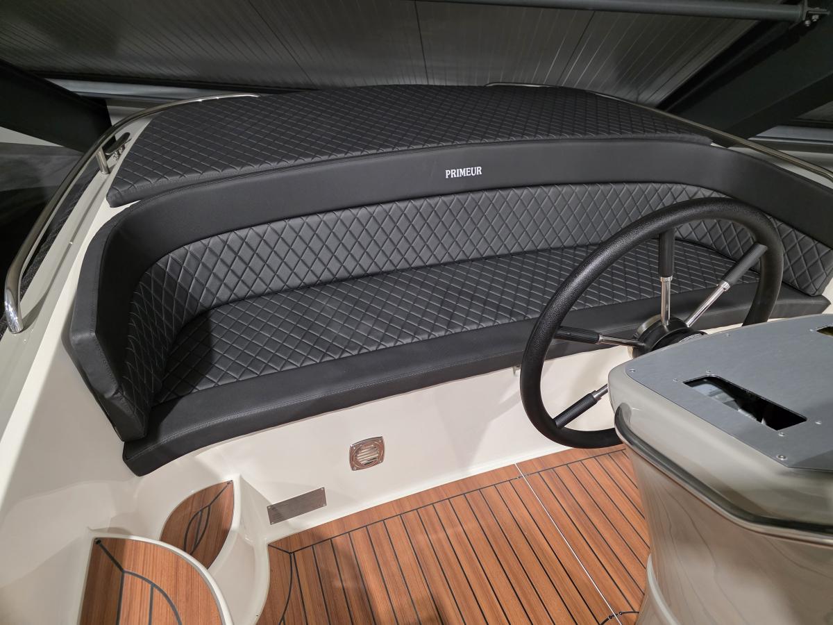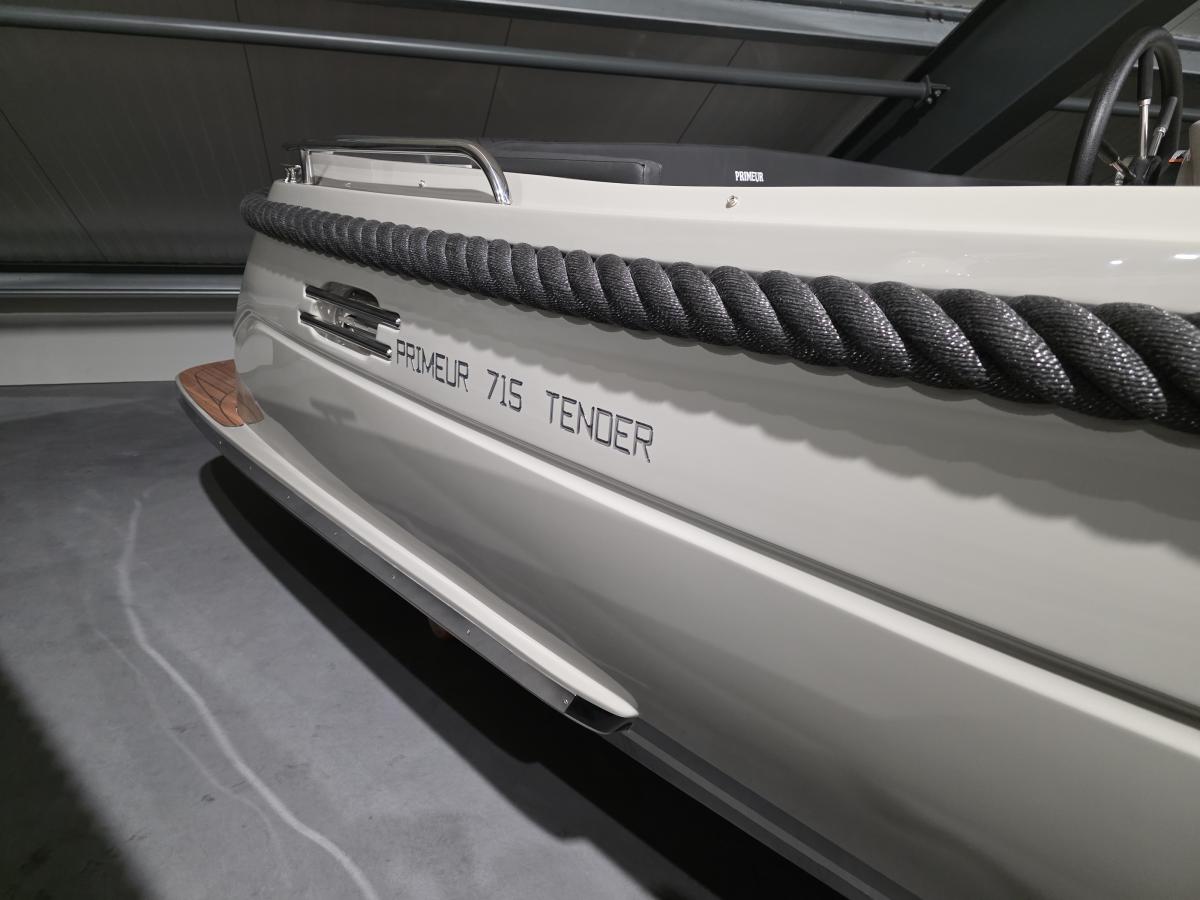 Deze mooie ruime Primeur 715 Tender heeft hetzelfde onderwaterschip als de Primeur 710 Tender, maar met andere optische kenmerken. Zo heeft de boot een kabelaring en andere bakken aan de zijkant. Deze bakken zijn te gebruiken als koelkast of prullenbak, maar fungeren ook als extra opbergruimte. Aan de achterkant is een zwemplateau bevestigd, handig om uit het water te komen. Om dit zwemplateau zit een RVS stootlijst.