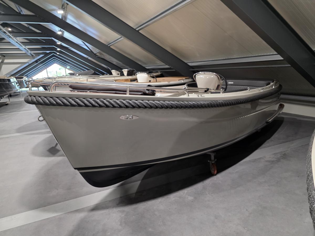 Deze Primeur 715 Tender is zeer compleet uitgevoerd met onder andere een boegschroef, koelkast en antifouling! Door zijn steengrijze rompkleur in combinatie met de carbon gewatteerde bekleding heeft deze tender een moderne uitstraling.