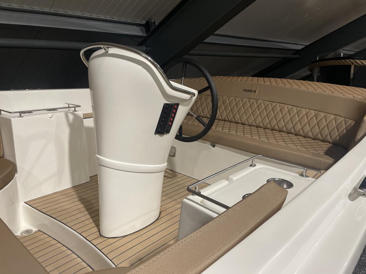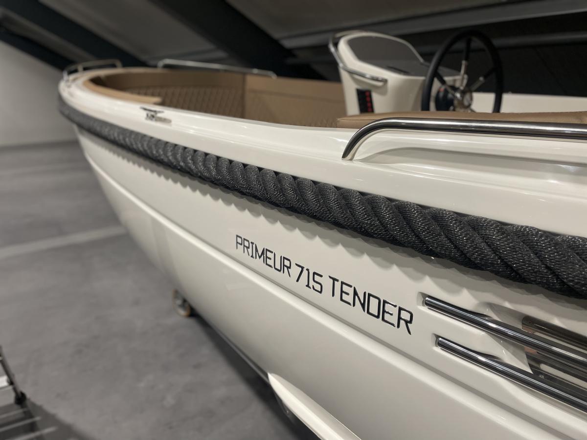 Nieuw binnen in onze prachtige showroom, Primeur 715 Tender in het wit met onder andere een boegschroef!