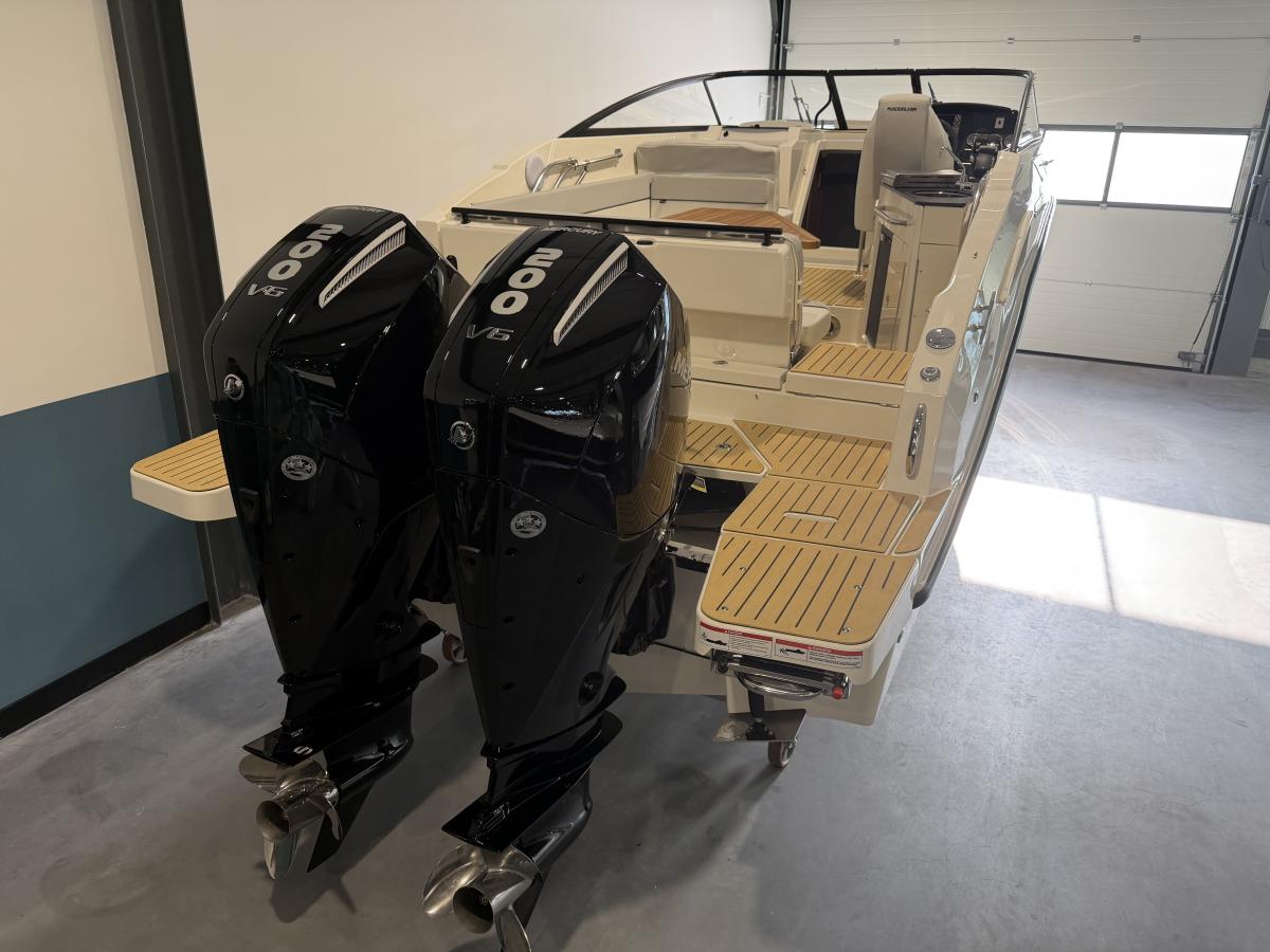 Achterop is de boot geschikt voor twee buitenboordmotoren tot 200 pk, wat garant staat voor krachtige prestaties, stabiel vaargedrag en volop vaarplezier!