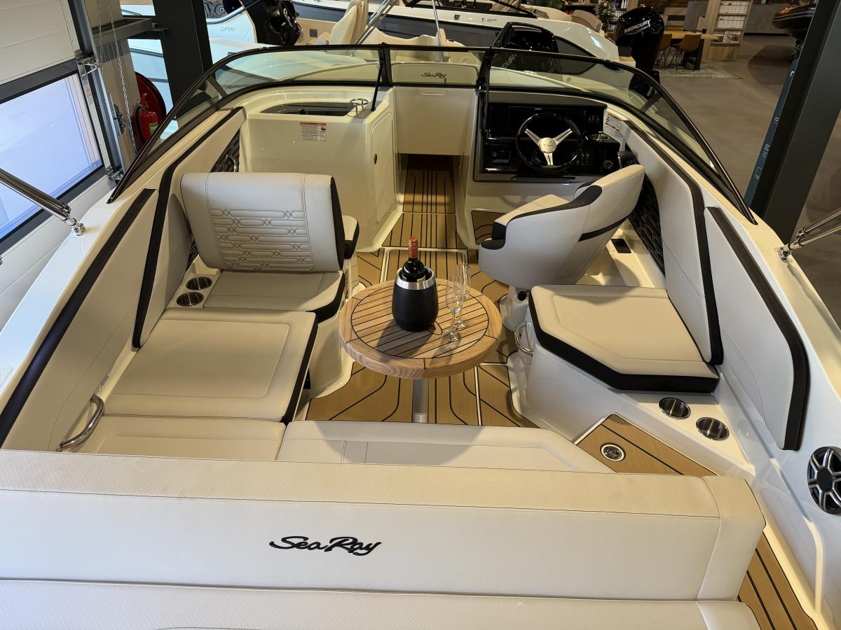Aangedreven door een sterke Mercury 200 pk buitenboordmotor met DTS (Digital Throttle & Shift) biedt deze Sea Ray uitstekende prestaties, soepele bediening en betrouwbaarheid.