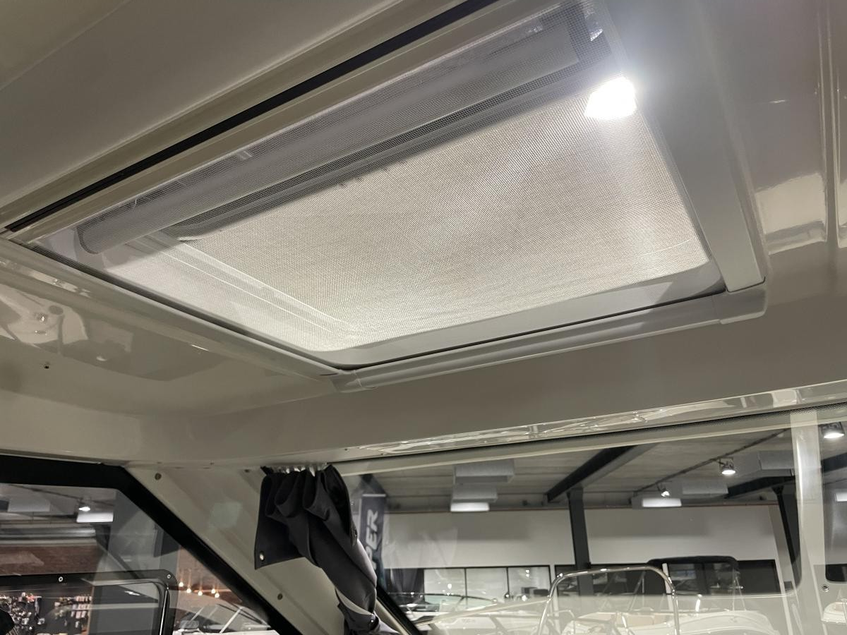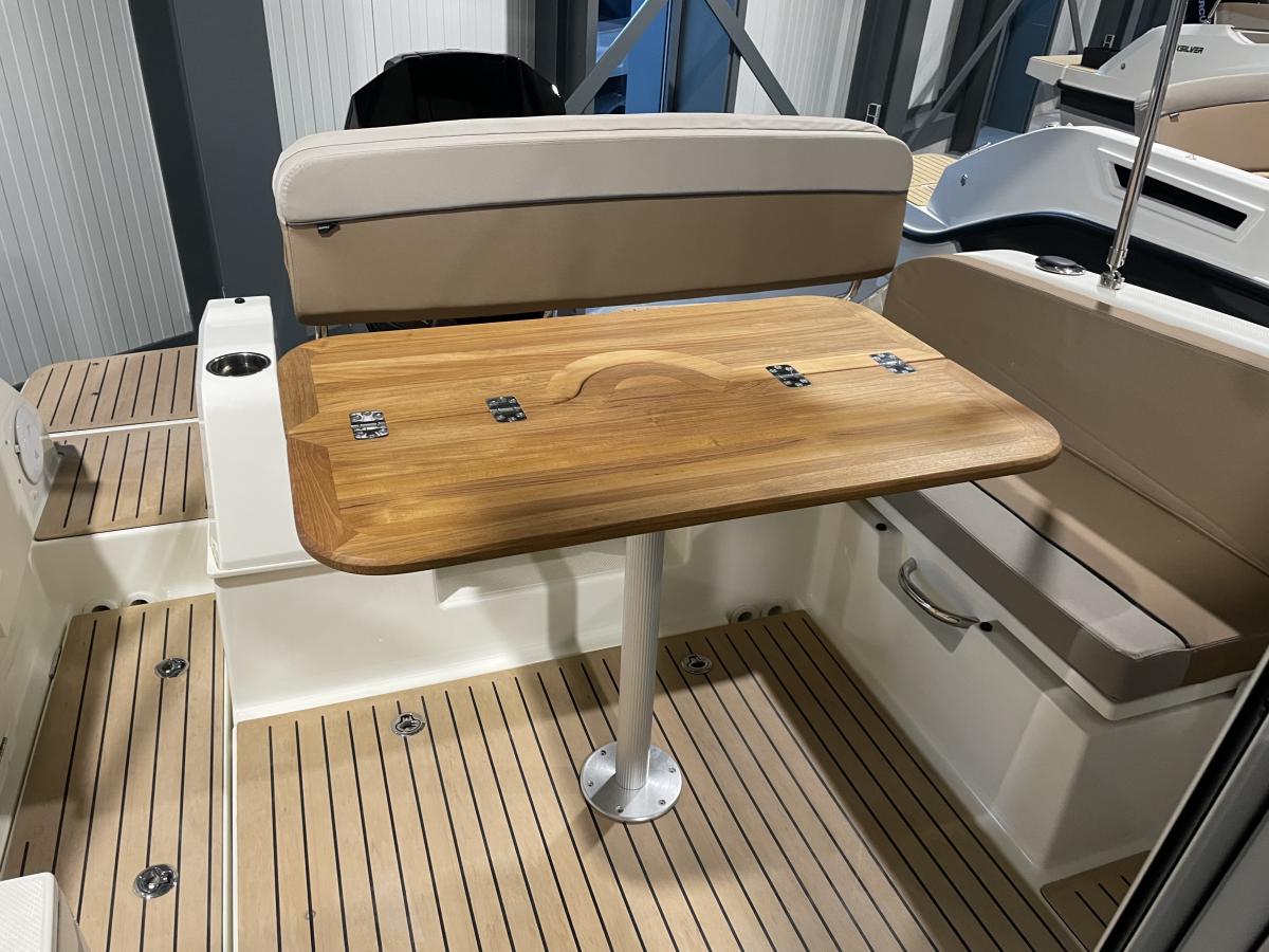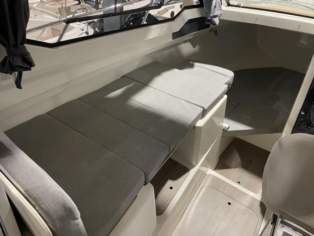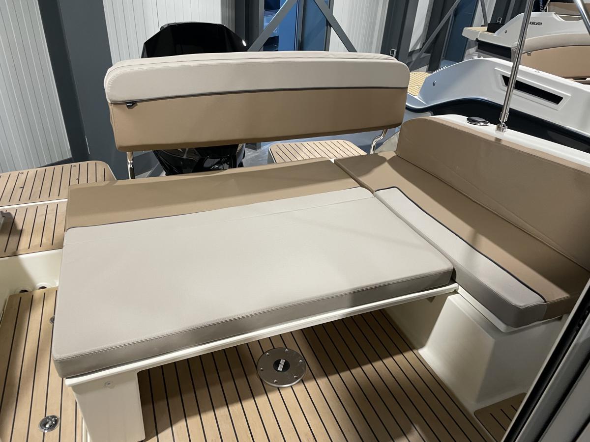 De 675 Weekend heeft achterin de kuip een ruime hoekbank en de schuifpui biedt toegang tot de ruime cabin. Hier is een tafel met 2 banken en een flip-up bestuurdersstoel. Er is een keukenblokje aanwezig met wastafel en gaspit. De banken kunnen omgebouwd worden tot een derde slaapplek.