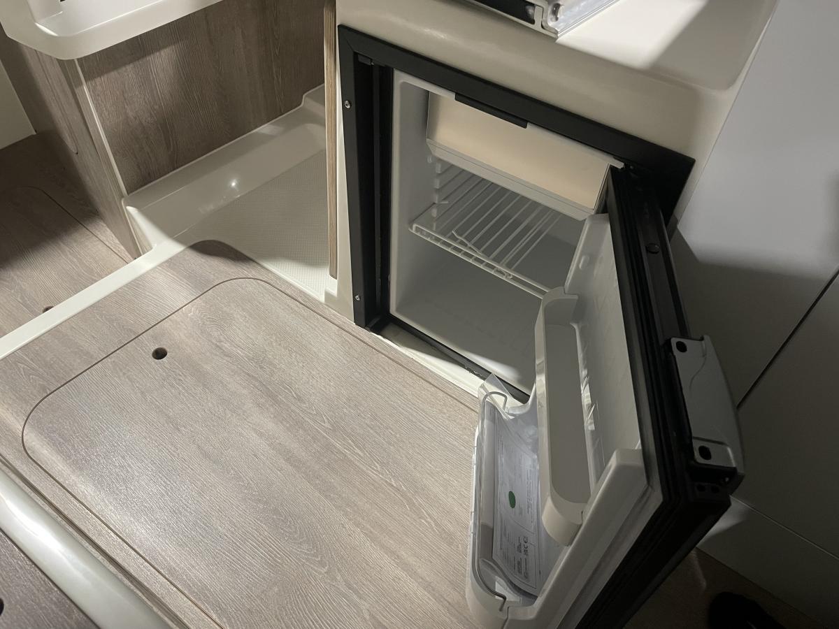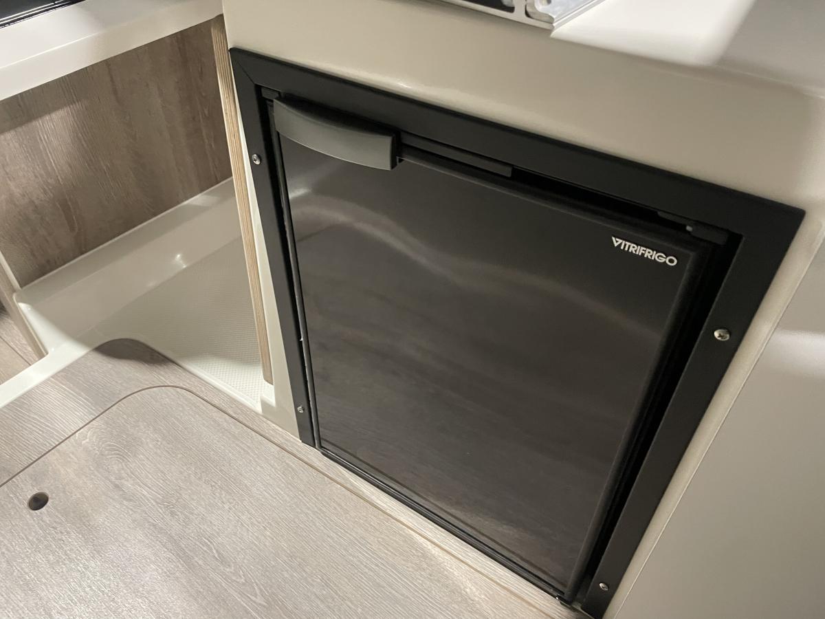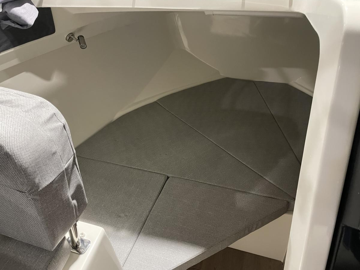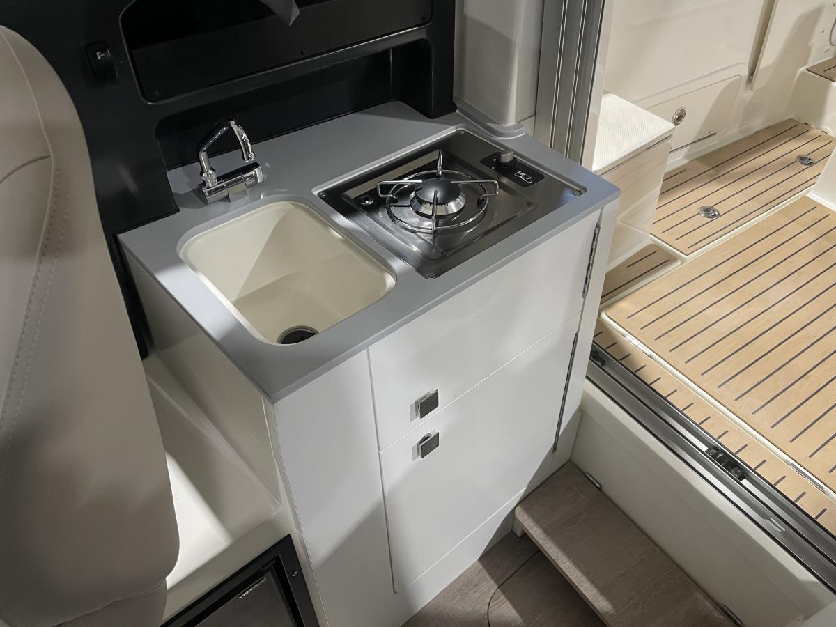 De 675 Weekend heeft achterin de kuip een ruime hoekbank en de schuifpui biedt toegang tot de ruime cabin. Hier is een tafel met 2 banken en een flip-up bestuurdersstoel. Er is een keukenblokje aanwezig met wastafel en gaspit. De banken kunnen omgebouwd worden tot een derde slaapplek.