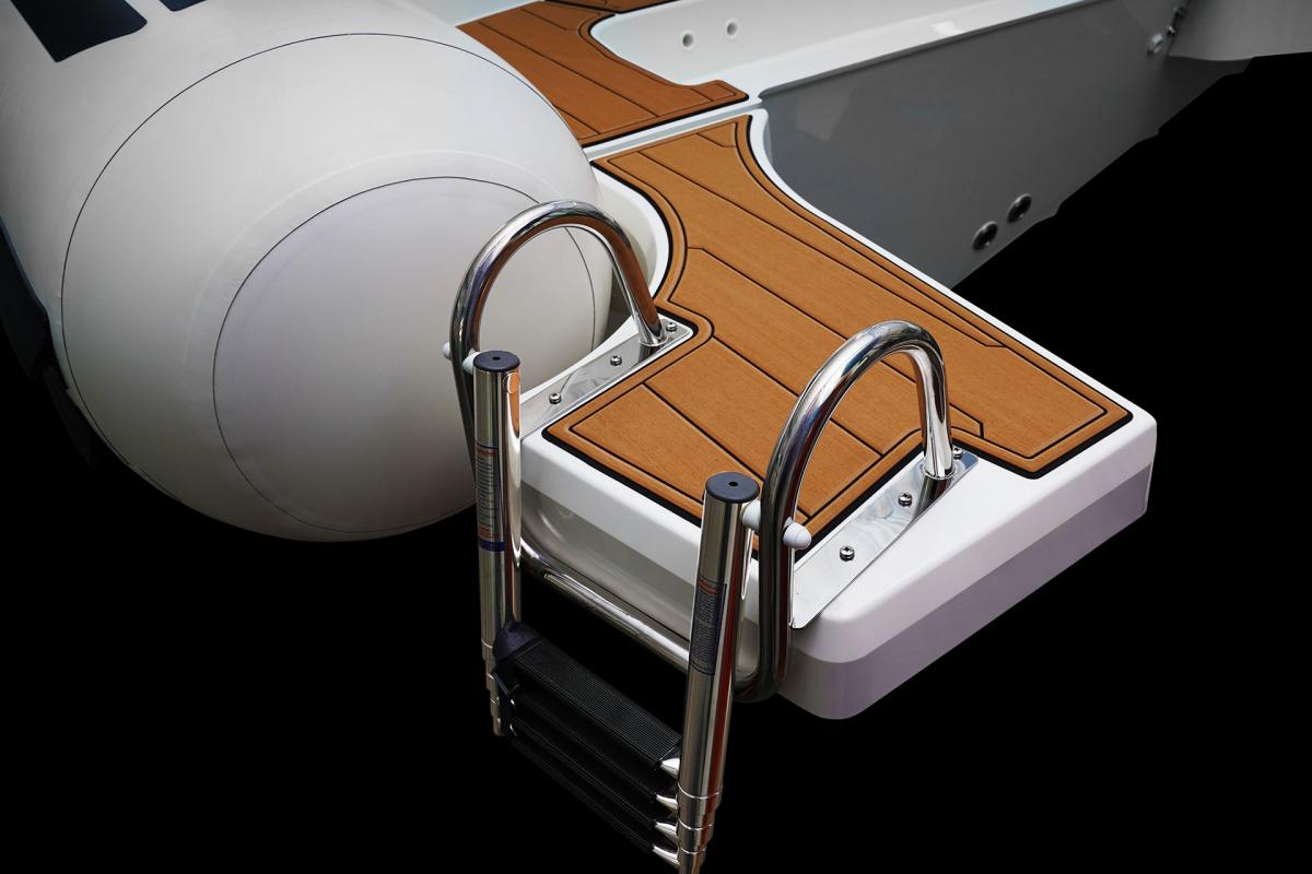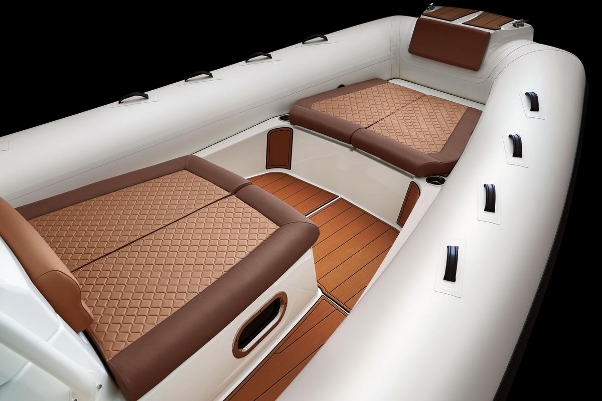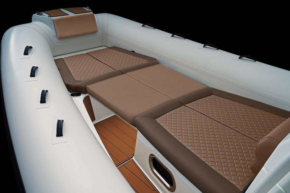 Deze ultieme cruiser beschikt over een diepe V-romp die zorgt voor een droge en soepele vaart. Hij is stabiel, licht van gewicht en vraagt minder onderhoud dan vergelijkbare boten met een harde romp, en dankzij het drijfvermogen en de duurzaamheid van de tubes is hij vrijwel onzinkbaar.