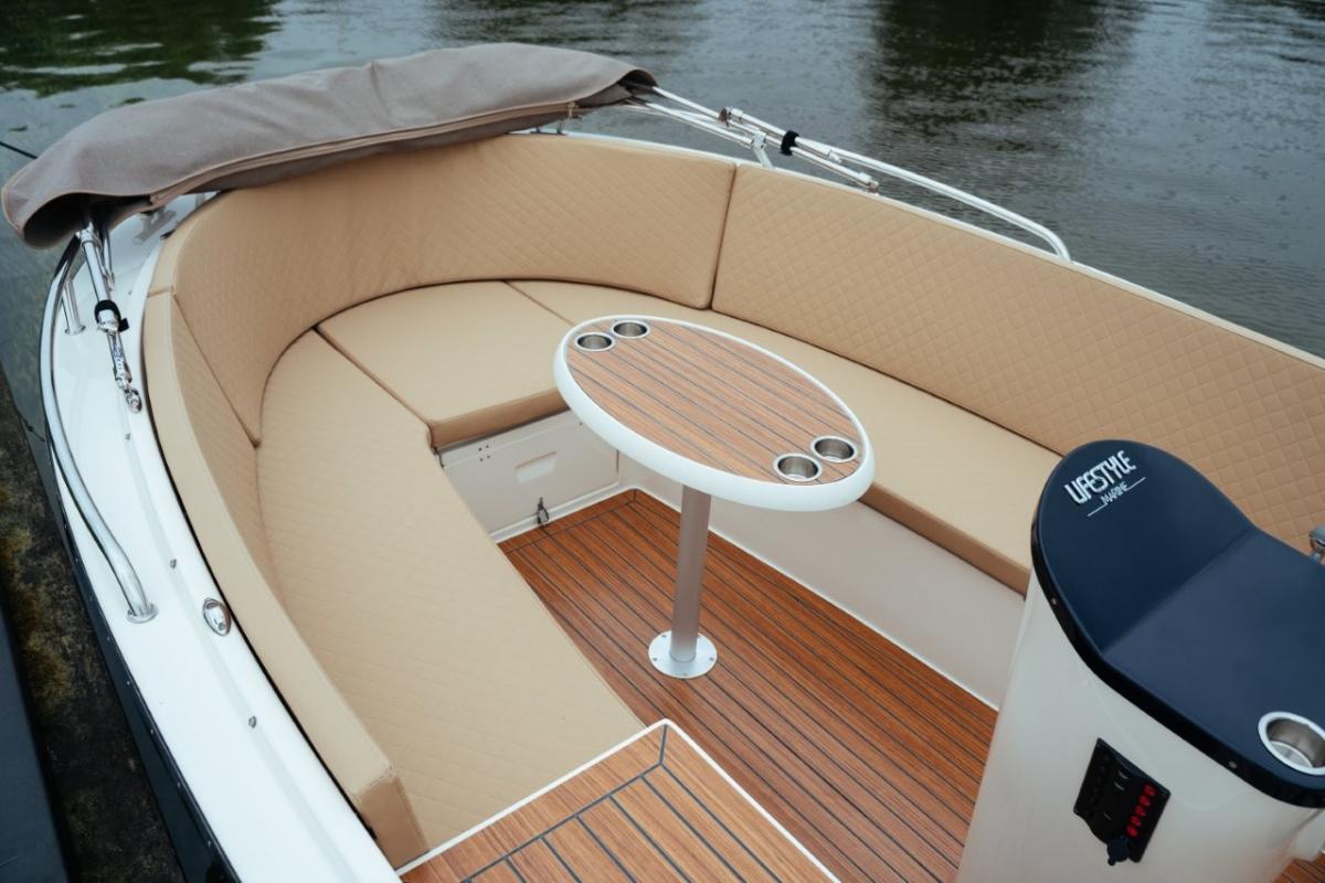 Voor extra ontspanning kan het uitneembare zonnedek eenvoudig tussen de rondzit worden geplaatst. Daarnaast biedt de cabrioletkap extra bescherming tegen de elementen, met een uitritsbaar voorraam en een aanritsbaar kuipzeil voorzien van ventilatie.