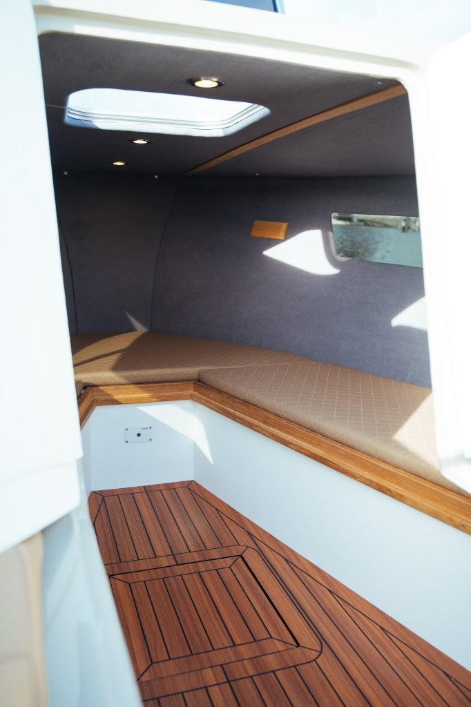 Uniek aan de 818 Tender is de afgesloten slaapcabine met de mogelijkheid voor een vast toilet.