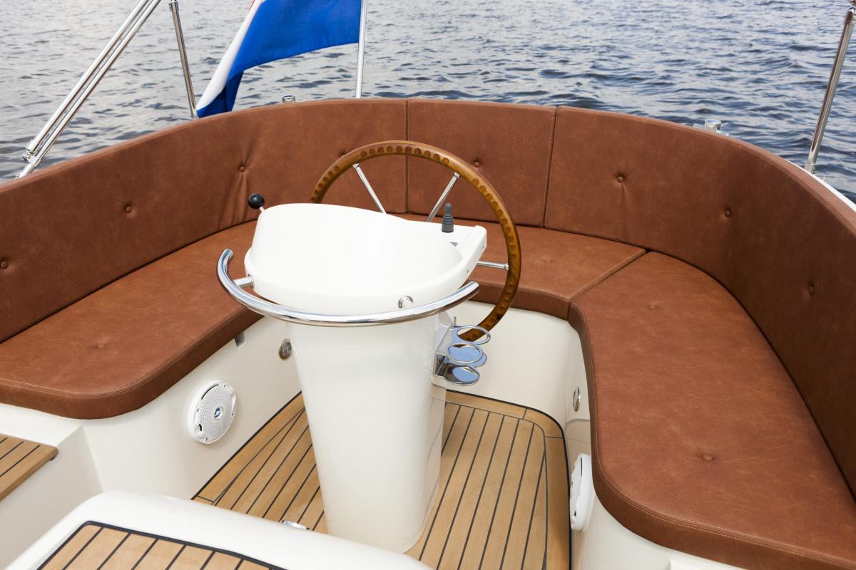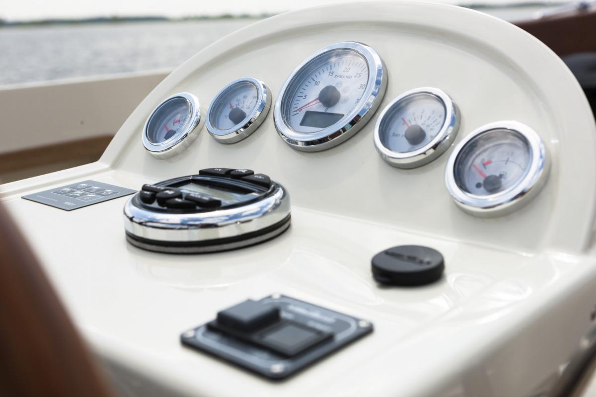 - Stuurconsole met stuurradbediening en luxe teak/rvs 6-spaaks stuurwiel 50 cm Ø