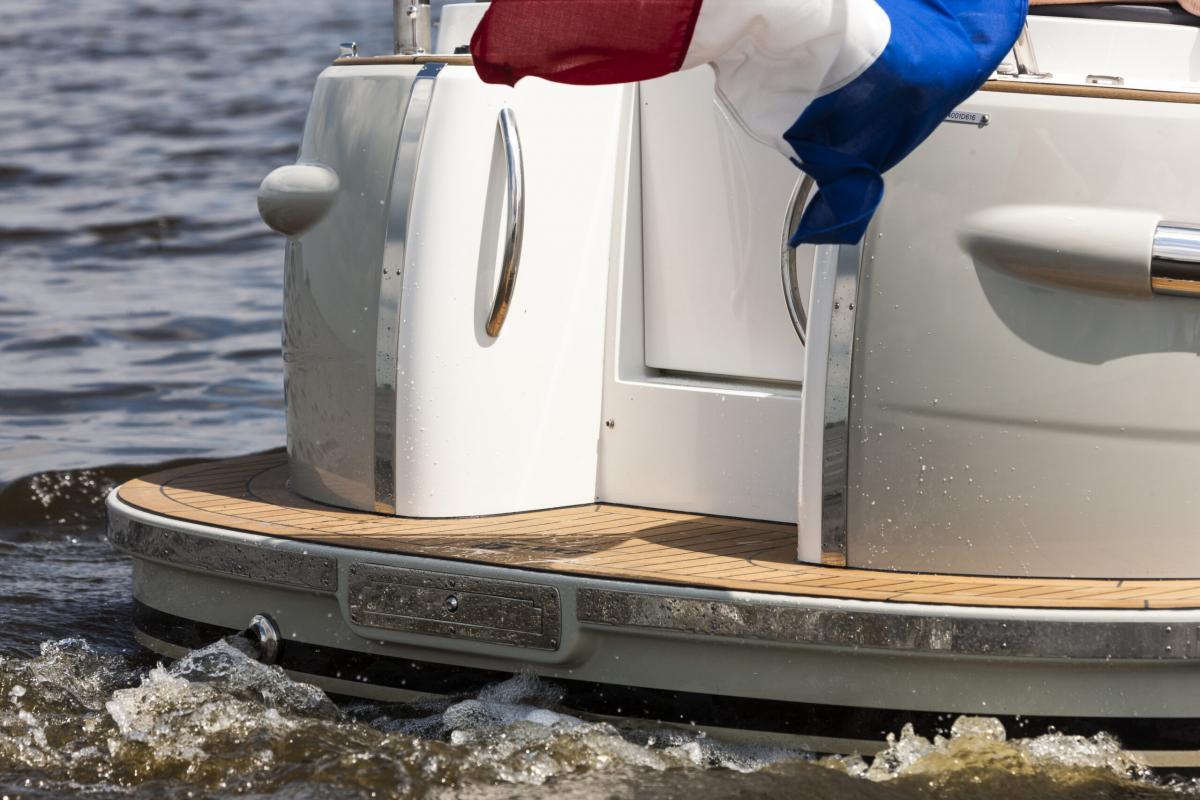 - Geïntegreerde deur in spiegel van de sloep met doorgang naar het zwemplateau