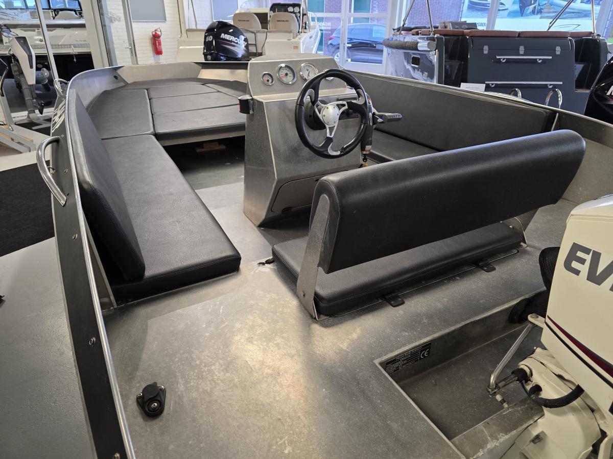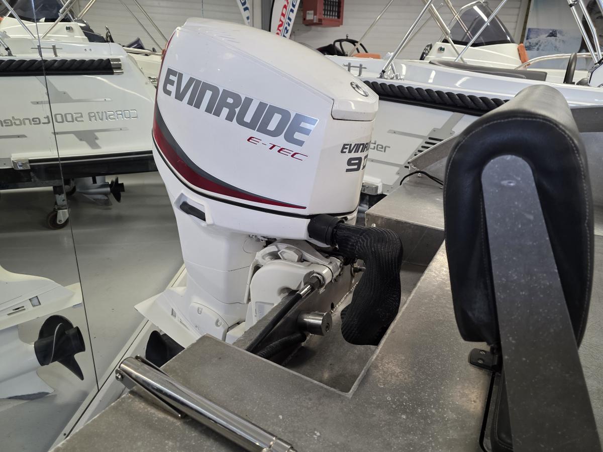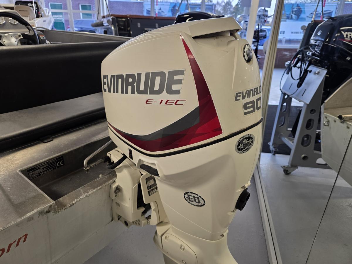 Voorzien van een Evenrude E-TEC buitenboordmotor.kracht / gewicht van een 2 takt, verbruik van een 4 takt!