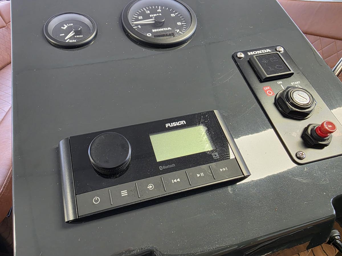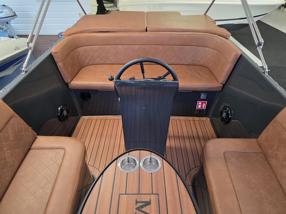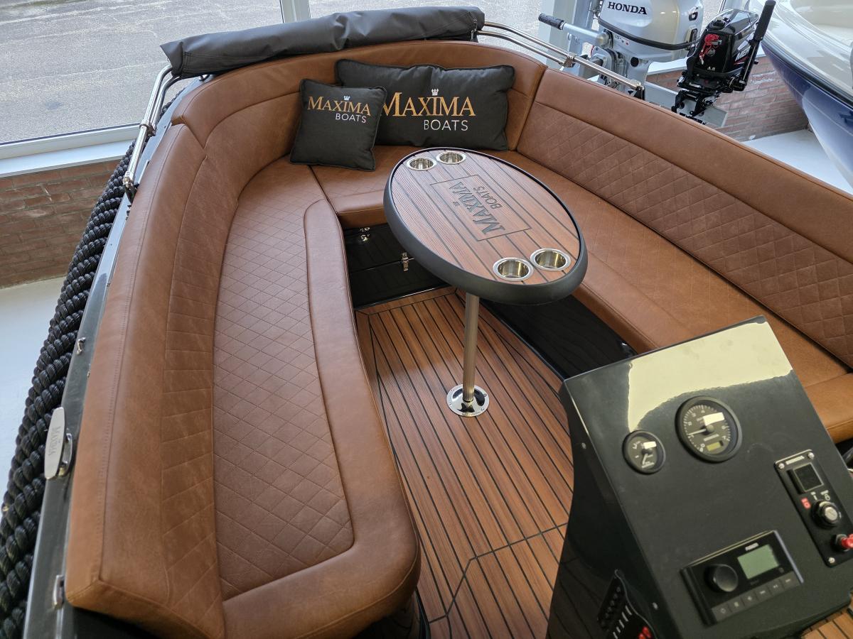 Prachtige Maxima 600 Tender voorzien van een stille en zuinige Honda BF 40 Fourstroke buitenboordmotor netjes weggewerkt in de bun.
