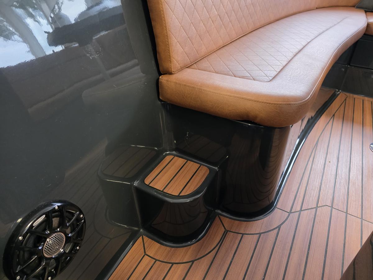 Deze luxe tender heeft een chique antraciete kleur met luxe cognac-kleurige bekleding met ruitmotief.